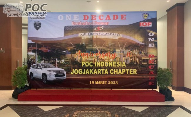 Pada tanggal 19 Maret 2023, Pajero Owners Community (POC) Jogjakarta Chapter merayakan ulang tahunnya yang ke-10 dengan menggelar acara kumpul bareng di Hotel Sahid Indrapasta Jogjakarta. Acara tersebut dihadiri oleh para pendiri dan mantan ketua chapter, antara lain Om Bambang (Bama), Om Hasan Tio, Om Ronald, Om Aphit, dan Om Tono, yang turut mendirikan chapter ini.